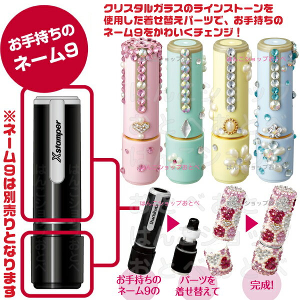 ネーム9 既製品 ※既製品は 2960種の姓限定です シャチハタ ネーム9 別注品【送料無料】ネーム9 デコスタイル フラワー柄 ブルー ネーム9専用 着せ替えパーツ チャームタイプ 特徴 お手持ちのネーム9のホルダー、キャップをデコって着せ替え! クリスタルガラス製ラインストーンを使用した、 超おしゃれなネーム印にチェンジできる着せ替えパーツです。
