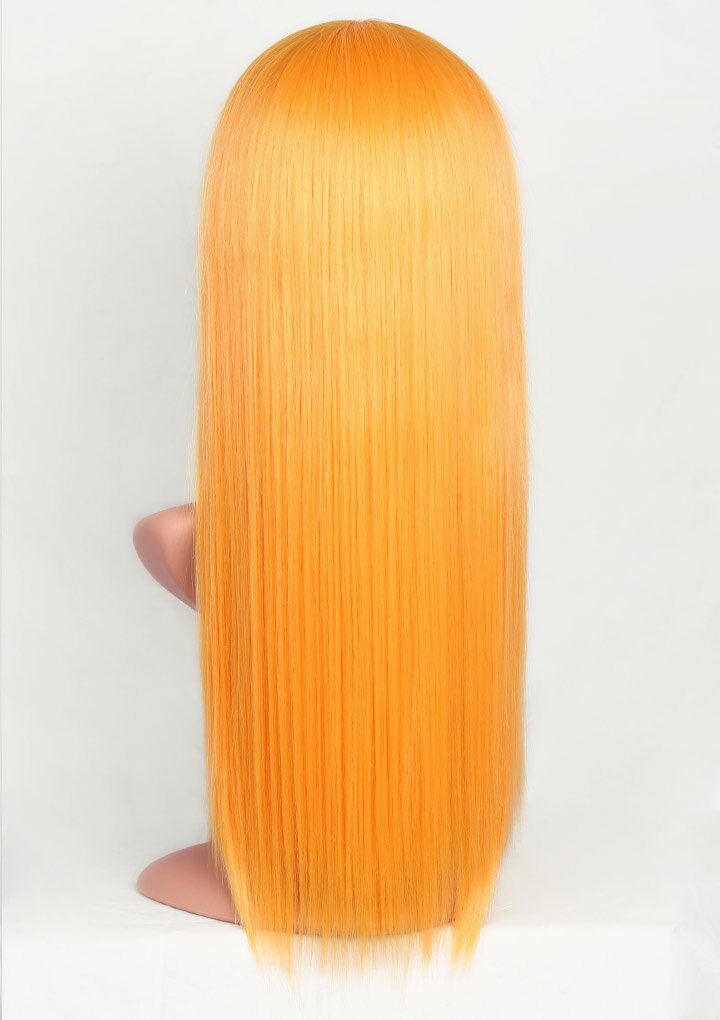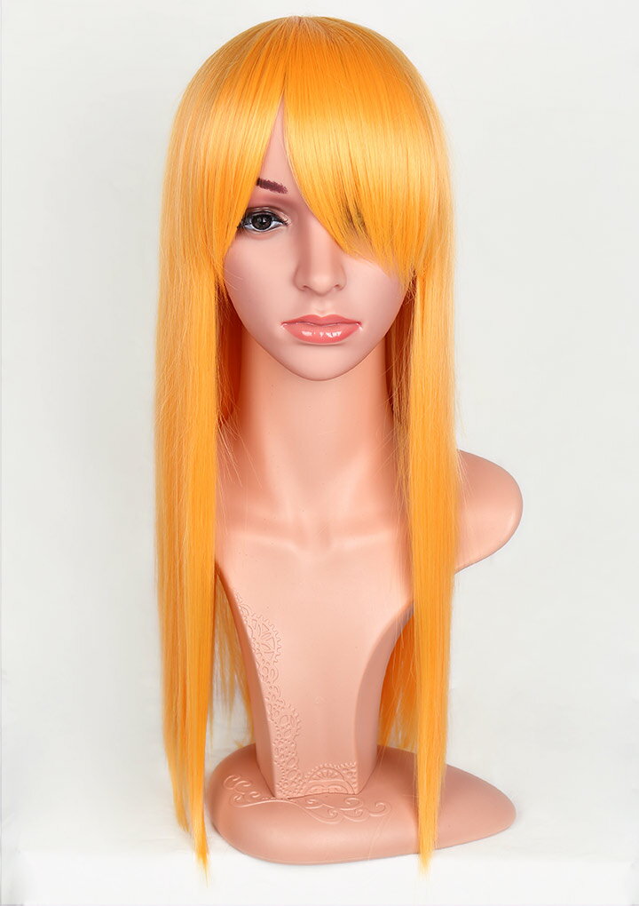 ウィッグ ロング ミディアム フルウィッグ セミロング ウイッグ 男装 黒髪 かつら 軽い 軽量 加工 耐熱 ハロウイン 富士達 ふじたつ 【ライトロング】 オレンジイエロー(LML60-F3)